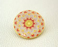 てまりの柄をあしらった、加賀てまり毬屋オリジナルのピンズです。 てまりの一番代表的な模様である「二つ菊」をモチーフにしたデザインです。 襟元や帽子、バッグのワンポイントにお使いください。 サイズ:直径22mm